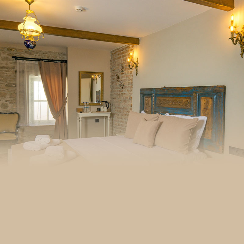 Mimari yapısı ve konseptiyle, yer yer adeta bir müzeyi andıran 1870’s Taş Konak Otel – Üç Oda, sizleri tarihte geriye götürüyor. Urla’nın tarihi mahallerinden birinde yer alan otelimizin, geçmiş zamanların atmosferini siz değerli misafirlerimize yaşatabilmesi için aklınıza gelebilecek en ufak ayrıntıyı bile atlamadık. Otellerimize adımını atan konuklarımızı, başta mimarı yapısıyla, konseptiyle ve otellerin birçok köşesinde karşılarına çıkacak ince detaylarla farklı ve keyifli bir deneyim bekliyor.
